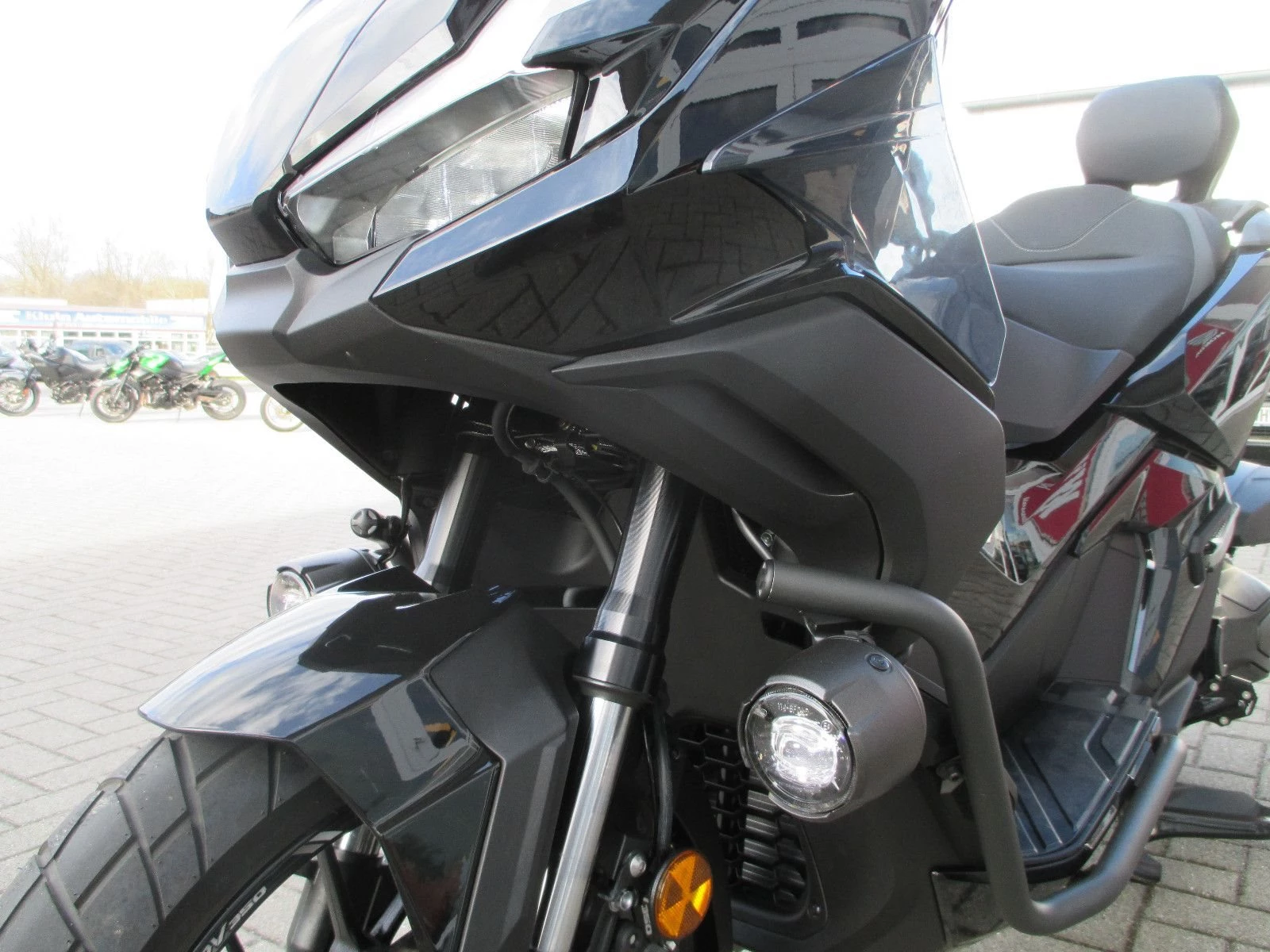 -Für einen reibungslosen Tagesablauf Kann es losgehen? Behalte den Smart Key einfach in deiner Tasche - er aktiviert die Zündung, öffnet den Sitz, passt zum optionalen Smart Top Case und verriegelt dieses, wenn du weggehst. Das 5-Zoll TFT-Cockpit ist ein echtes Highlight und bietet auf einen Blick klare, detaillierte digitale Informationen. Mit Honda RoadSync bleibst du auch unterwegs in Verbindung und kannst dein AndroidT- oder iOST-Gerät für Anrufe und Musik verbinden. Die gesamte Beleuchtung ist in LED-Technik ausgeführt: markante Doppelscheinwerfer, Notbremssignal (ESS) und automatische Blinkerabschaltung. So wirst du gesehen und bist auf der Straße sicher unterwegs.