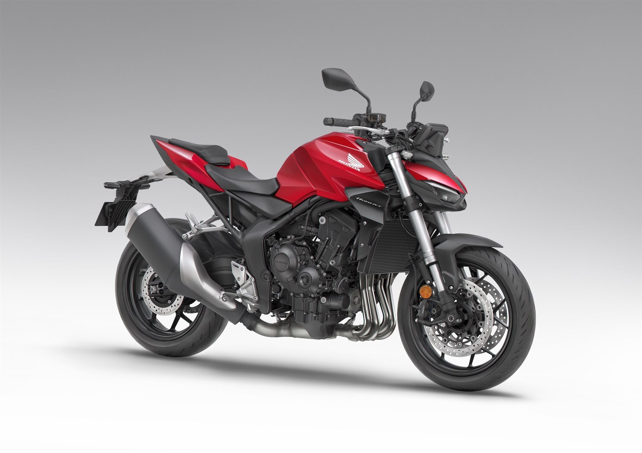 Die neue CB1000 Hornet mit ihrem Vierzylindermotor ist ein erstklassiges Naked Bike, das den Asphalt zum Glühen bringt. Throttle By Wire sorgt für präzise Kontrolle, während das Fahrwerk mit der einstellbaren SHOWA 41mm SFF-BP Upside-Down-Gabel und dem Pro-Link-Federbein ausgestattet ist. Die unverfälschte, aggressive Streetfighter-Attitüde wird durch einen markanten LED-Doppelscheinwerfer unterstrichen. Das 5-Zoll TFT-Farbdisplay und die Honda RoadSync-Konnektivität sorgen für die nötigen Informationen. Kann es losgehen?