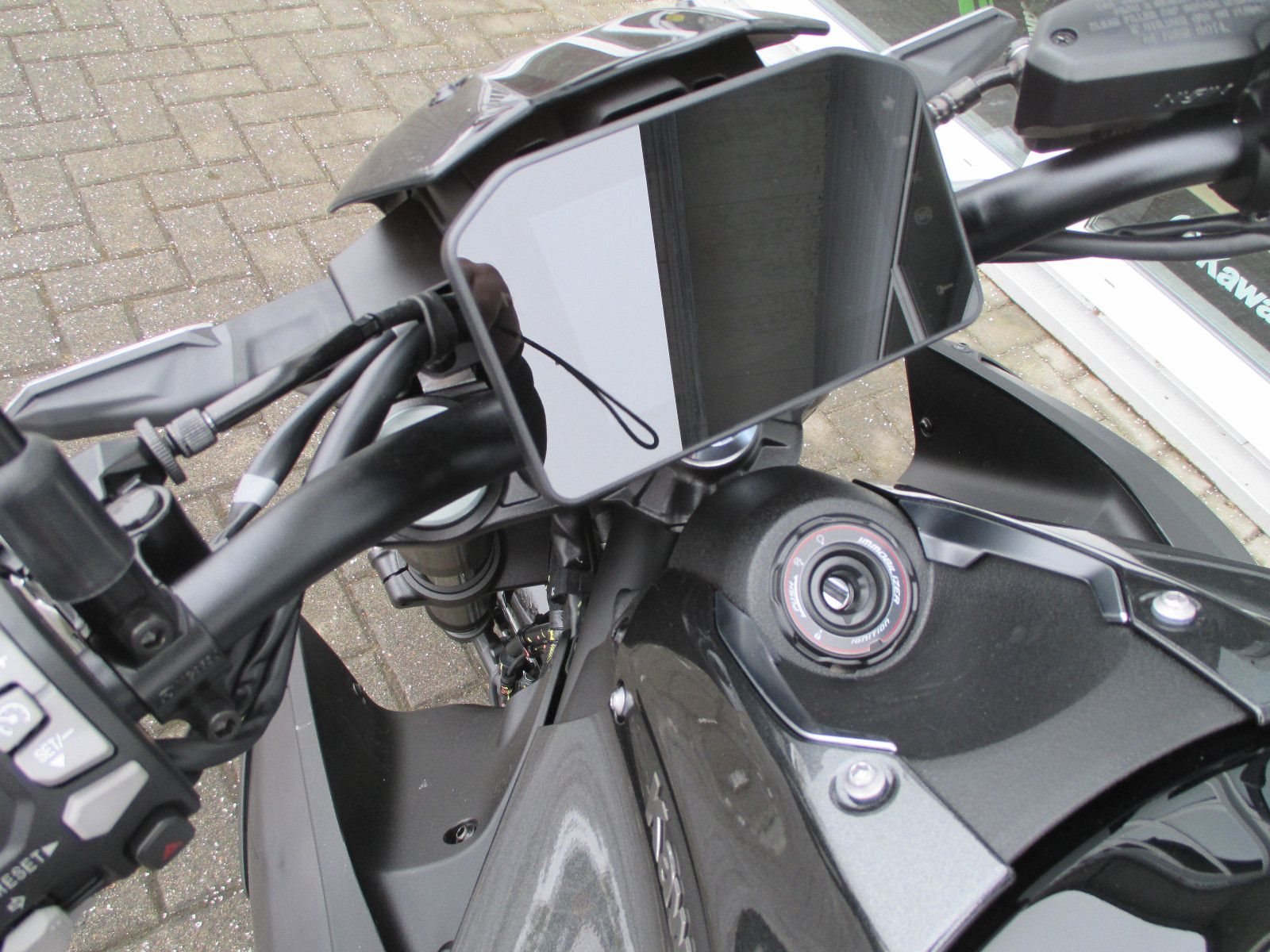 • Rideology-App Erstmals bei Kawasaki kann die Turn-by-Turn-Navigation auf dem Display angezeigt werden, sodass der Fahrer sieht, wo er als nächstes abbiegen muss, während die Kompatibilität mit RIDEOLOGY THE APP MOTORCYCLE es dem Fahrer ermöglicht, verschiedene Funktionen per Sprachbefehl zu steuern.