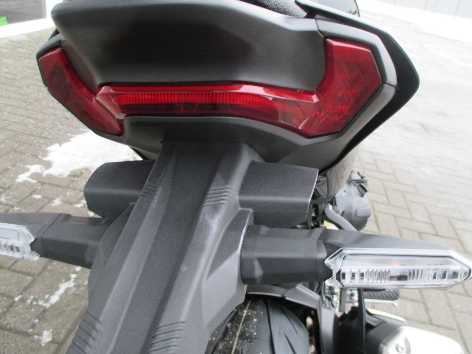 • Die nächste Stufe des Sugomi-Designs Das markante Design der neuen Z900, bei dem der Motor im Mittelpunkt steht, bietet eine unvergleichliche Wirkung, die die Aufmerksamkeit aller Betrachter auf sich zieht und hält. Die elegante, eng anliegende Karosserie wird durch Metall-Akzente ergänzt, die einen hochwertigen Eindruck vermitteln. Vom aggressiveren Look der Frontpartie bis hin zum futuristischen Eindruck des fortschrittlichen neuen Rücklichts vermittelt das Erscheinungsbild der Z900 ein leichtes, agiles Image, das ihre sportliche Leistung widerspiegelt.